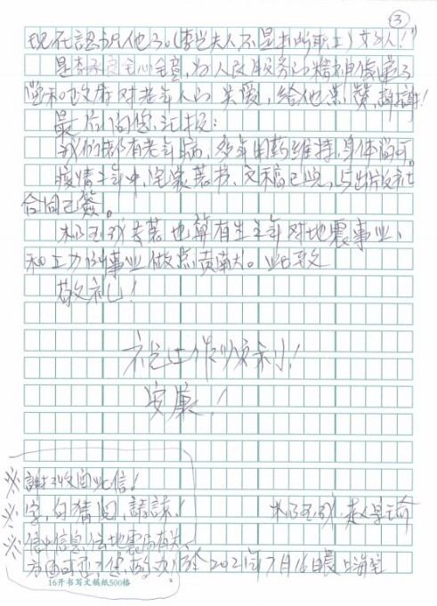 發布時間: 2021-08-20 點擊數量:7052“以人性化服務和溫情服務為宗旨,努力做到讓老同志方便、放心、滿意,感受到家人般的溫暖”,這是離退休辦公室的服務宗旨。近日,一封感謝信從遠在上海定居的老同志寄來,信里表達了對工力所在建黨百年之際取得的成績感到驕傲和自豪,重點感謝了離退辦同志對異地居住和就醫的老同志給予生活上和就醫方面的關心和幫助。他飽含感激之情地講述了幾件事,他說“我們講述幾件個人小事,但能說明工力所不單培養科技人才,為民辦事一般工作人員也是稱職的?!薄叭娜鉃槿嗣穹盏木駛鬟f了黨和政府對老年人的關愛”……老同志口中的小事都是我們為群眾服務的大事,我們要為群眾辦真事、真辦事。