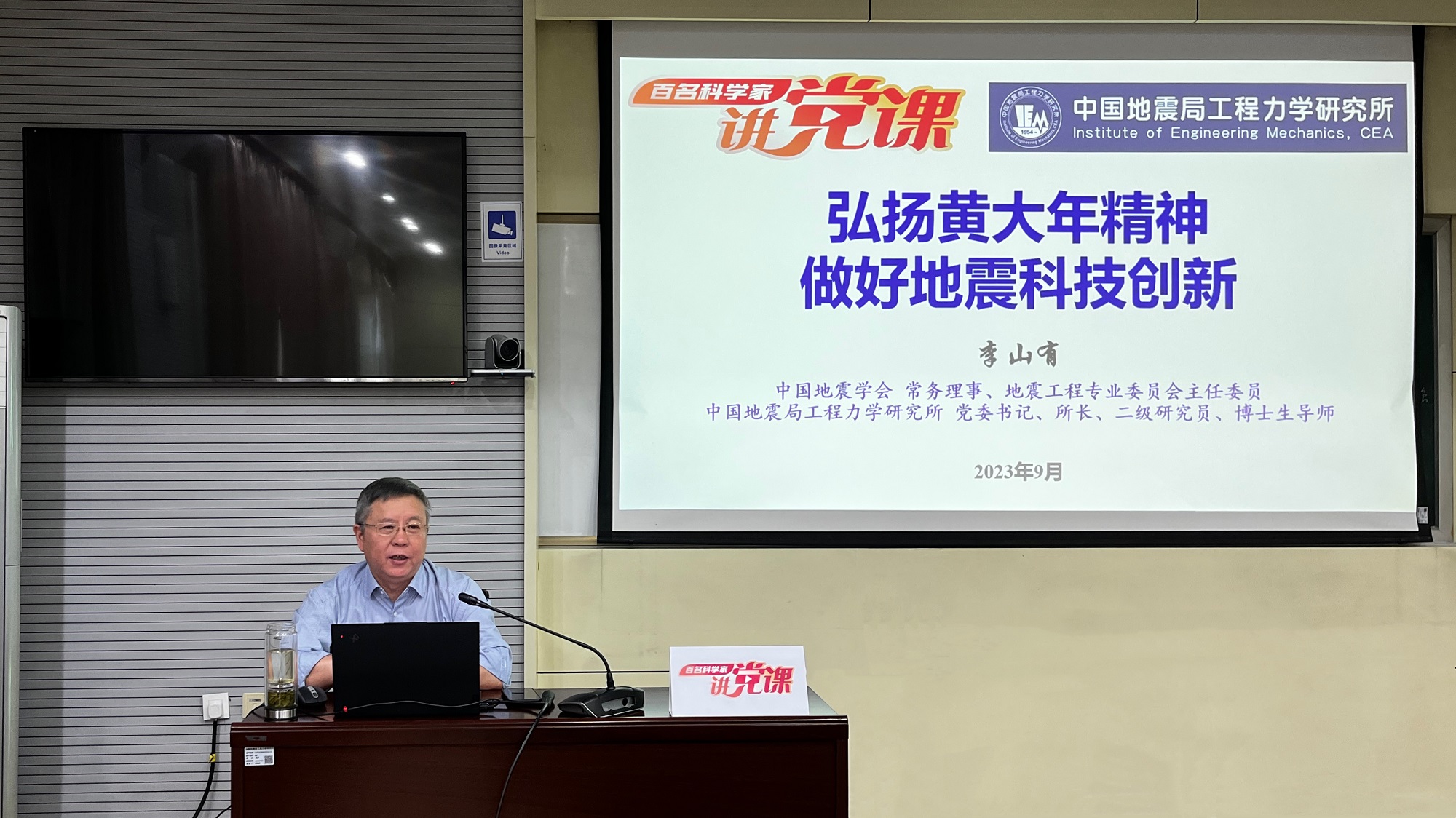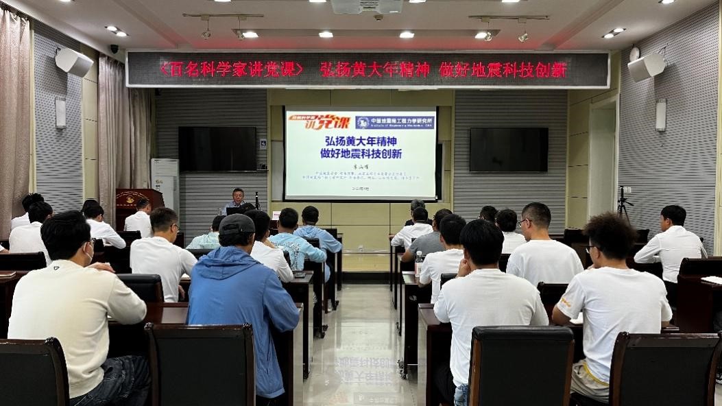 發布時間: 2023-09-15 點擊數量:14656為有效發揮中國科協黨校全國學會分校政治引領“主陣地”、黨性錘煉“大熔爐”作用,中國科協科技社團黨委組織開展了“百名科學家講黨課”活動。受中國地震學會邀請,9月14日,中國地震學會常務理事、地震工程專業委員會主任委員,我所黨委書記、所長李山有同志以《弘揚黃大年精神 做好地震科技創新》為題為所辦計財黨支部、工程地震研究中心黨支部及碩士研究生第二黨支部講授專題黨課。