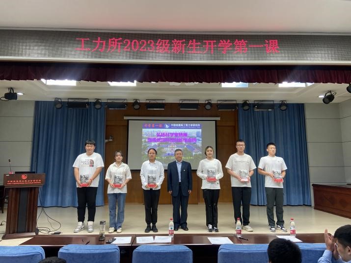 入所教育結(jié)束后,李山有講授開學(xué)第一課。他帶領(lǐng)大家重溫了劉恢先教授的科學(xué)家精神和愛國愛黨情懷,強調(diào)科研誠信的重要性,勉勵大家要牢記使命責(zé)任,秉承工力所“嚴(yán)謹(jǐn)、求真、博學(xué)、創(chuàng)新”的精神,學(xué)到知識、學(xué)會做人。最后,他向黨員代表贈送了《習(xí)近平的七年知青歲月》一書,鼓勵同學(xué)們成為有理想、敢擔(dān)當(dāng)、能吃苦、肯奮斗的新時代青年。