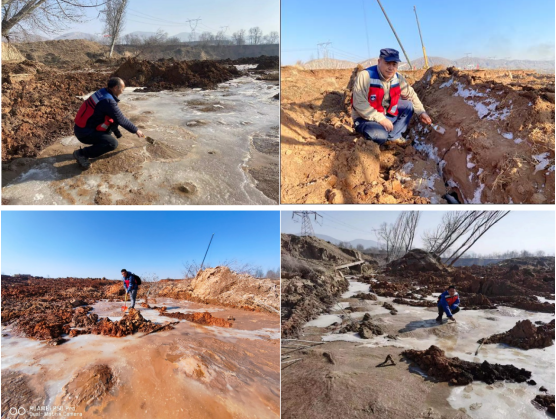12月22日,在所領導的指示下,我所袁曉銘團隊成立了專門的液化調(diào)查組,組長為陳龍偉研究員,組員聶桂波研究員、王永志研究員、汪云龍副研究員、李兆焱副研究員和張昊宇副研究員。于12月23日早奔赴地震現(xiàn)場,重點考察中川鄉(xiāng)的震害問題。12月24日,調(diào)查組經(jīng)過一天的艱苦調(diào)查,在此次地震流滑區(qū)上游發(fā)現(xiàn)了非常顯著液化現(xiàn)象(圖4),大規(guī)模液化分布在上游兩個區(qū)域內(nèi)(圖5)。結合考察組掌握的以往震害經(jīng)驗,判斷流滑區(qū)震害是上游發(fā)生大規(guī)模液化并導致長距離液化流滑所致,得出液化流滑是中川鄉(xiāng)震害誘因的結論,并向中國地震局甘肅積石山6.2級地震科考指揮部報告。
