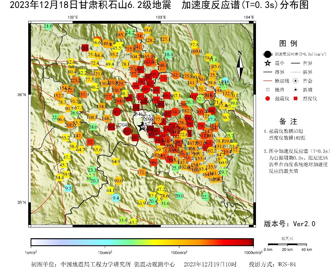 圖4甘肅積石山6.2級地震加速度反應譜(T=0.3s)分布圖