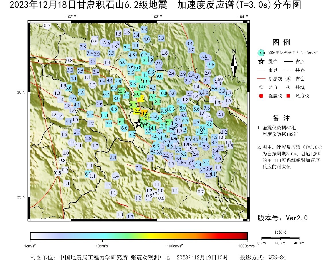 圖6甘肅積石山6.2級地震加速度反應譜(T=3.0s)分布圖