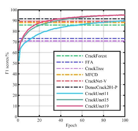 該成果在結(jié)構(gòu)健康監(jiān)測領(lǐng)域的國際權(quán)威期刊《Structural Health Monitoring-An International Journal》發(fā)表。(Zhang Lingxin, Shen Junkai*, Zhu Baijie. A research on an improved Unet-based concrete crack detection algorithm [J]. Structural Health Monitoring, 2021, 20(4): 1864-1879. DOI: https://doi.org/10.1177/1475921720940068) (IF: 5.929, *通訊作者)