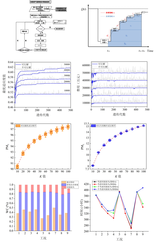 (3)將城市燃?xì)夤芫W(wǎng)的抗震、救災(zāi)過程分為三個階段,基于不同的計算機優(yōu)化方法對各階段的抗震韌性進(jìn)行提高。第一階段在有限的政府資金預(yù)算下,利用自適應(yīng)比例與直接比較-遺傳算法(FPDC-GA)得到震前最優(yōu)加固或更換管道的方案,以最大化燃?xì)夤芫W(wǎng)的抗震魯棒性。第二階段根據(jù)震后中斷供氣的用戶端節(jié)點分布情況,采用多標(biāo)簽K近鄰算法(ML-KNN)預(yù)測震后泄漏管道,計算震后優(yōu)化的管道試壓順序,以達(dá)到高效率排查失效管道從而快速進(jìn)入修復(fù)階段的目的。第三階段基于貪心策略提出一種震后管道修復(fù)順序優(yōu)化方法,以提升燃?xì)夤芫W(wǎng)功能恢復(fù)的效率。將這三階段提升方法應(yīng)用于中國華北某城市燃?xì)夤芫W(wǎng)抗震韌性提升工作中,驗證了所提方法的可行性。相關(guān)技術(shù)細(xì)節(jié)可查閱發(fā)表在《Soil Dynamic and Earthquake Engineering》上的論文。