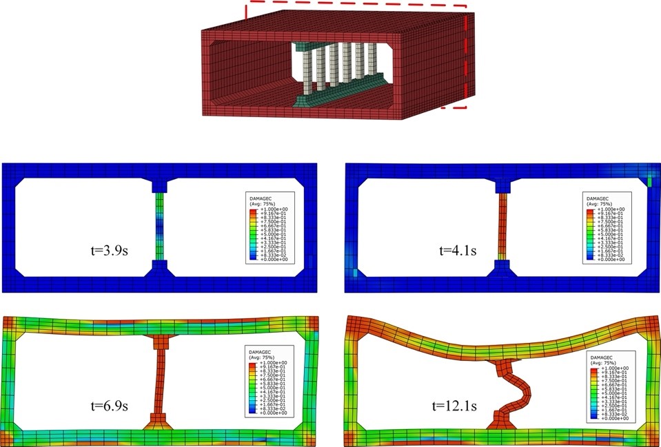 城市地下空間的開發充分利用了城市空間資源,為人們的生活提供了極大的便利。然而,歷次大地震震害調查表明地下結構面臨較大的地震災害風險。國內外的研究學者針對著名的1995年阪神地震中大開車站地震破壞案例進行了大量的研究,然而大多數的研究都沒有實現對大開車站倒塌演化全過程的模擬;結構的承載能力通常具有一定的冗余度,某一結構構件實效會引起結構性能的退化,以往的研究中未給出大開車站性能退化過程,因此對于其破壞機理的解釋仍存在一定的局限性。本文給出了能夠重現地下結構倒塌過程的非線性時域數值模擬方法,重現了阪神大地震中大開車站的災變演化過程,并對由于中柱實效而引起的矩陣地下結構抗震性能退化機理進行了研究。